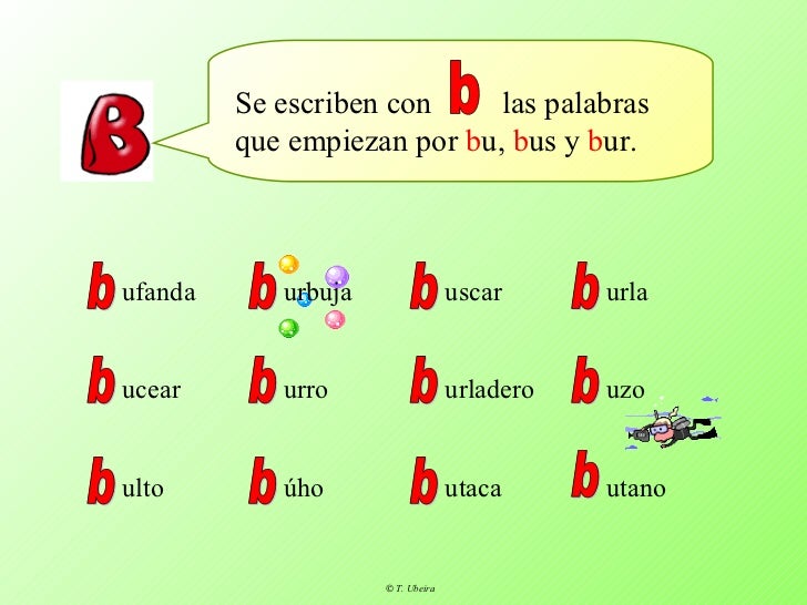 Palabras que comienzan con b. Construir otras listas que terminan con o. Si las sabemos nunca más tendremos dudas sobre si una palabra se. La letra b en mayúscula se esbribe B.